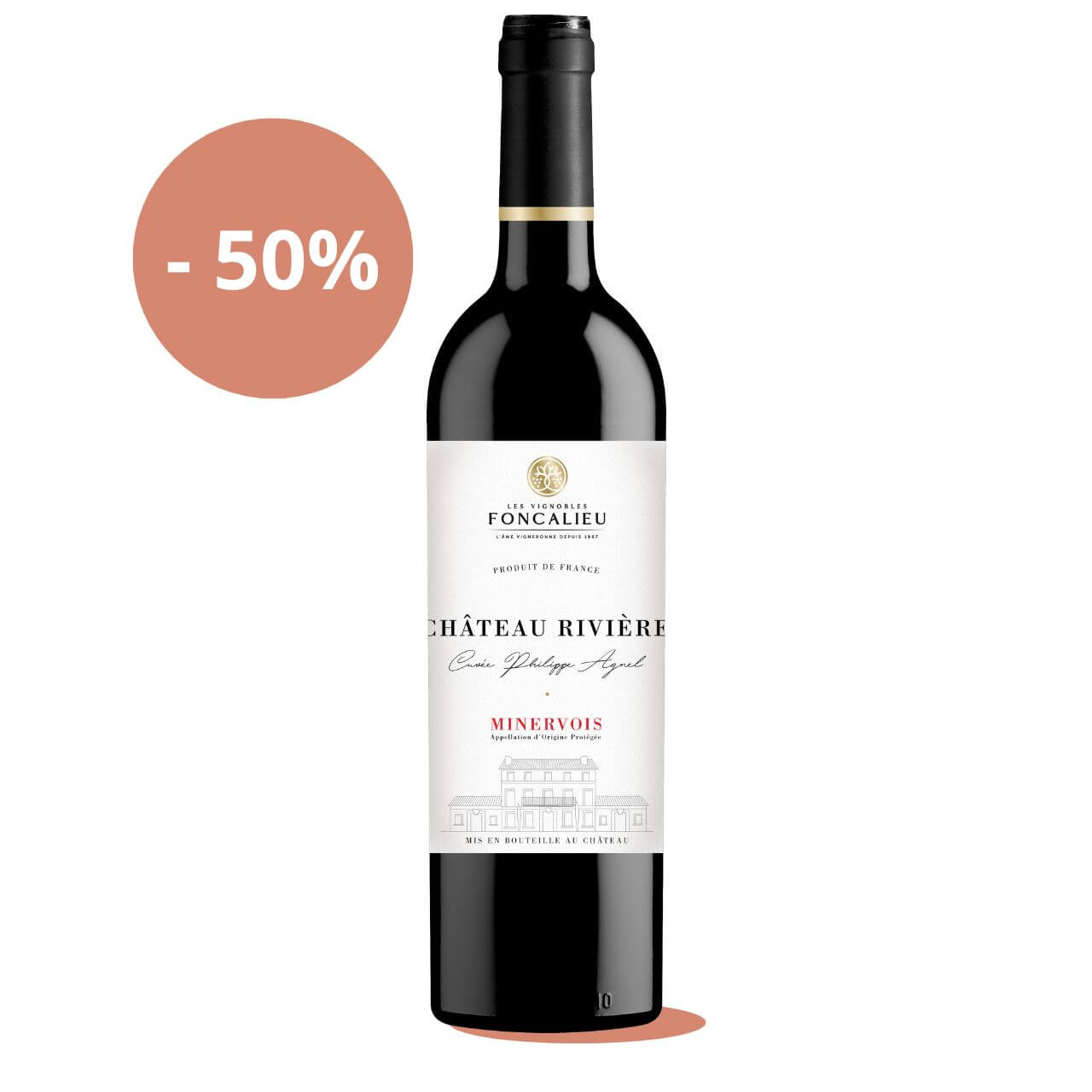 Les vignes du Château Rivière, exposées plein sud sur des terrasses argilo-calcaires, bénéficient d’un climat ensoleillé favorable à une maturation optimale des raisins. Cet assemblage de Syrah et Grenache noir est la parfaite expression de l’AOP Minervois.